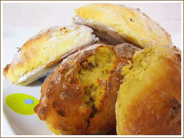 Deixe arrefecer um pouco, mas ainda enquanto quente molde as broas, pequeninas, com as palmas das mãos; dê-lhes alguns golpes em xadrez com as castas de uma faca, coloque-as num tabuleiro polvilhado de farinha e leve ao forno forte para alourarem um pouco cerca de 15 minutos.